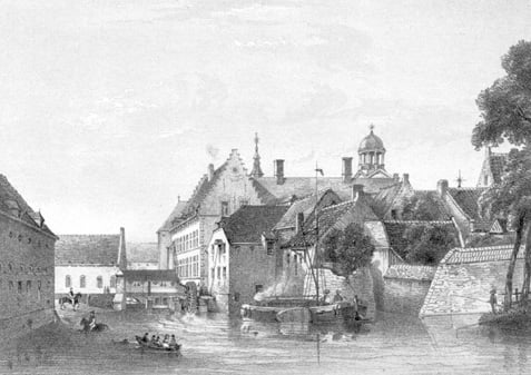 Canalisée entre le 17è et le 19è siècle, il faut faire un gros effort d’imagination pour entrevoir à quoi pouvait ressembler la Dendre d’antan : une rivière tortueuse (la Tenre) qui s’écoule nonchalamment et s’épanche régulièrement sur des milliers d’ha de marais et de prairies humides, avec de-ci de-là quelques fermes et habitations souvent situées à flanc de coteau, à l’abri des crues.